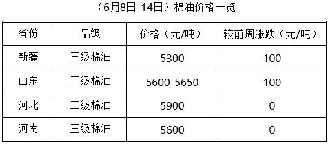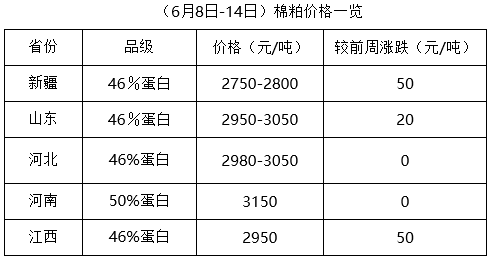 上周(6月8-14日),期貨豆油、豆粕震蕩難穩(wěn),現(xiàn)貨波動調(diào)整。棉籽因貨少價漲,成本繼續(xù)提高,油棉廠榨利虧損,加之麥?zhǔn)辗偶伲_工率較低,廠家對棉副產(chǎn)品提價出貨,市場購銷少量。