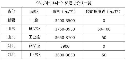 上周,棉籽資源量不足,價格高位上漲,油廠經(jīng)營虧損持續(xù),加之麥?zhǔn)辙r(nóng)忙,油棉廠開工率下降,棉短絨供應(yīng)量明顯減少,化纖廠、精制棉廠需求有所增加,提振個別地區(qū)棉短絨價格穩(wěn)中續(xù)漲。但因下游市場需求仍未全面放量,棉短絨上漲空間受到一定限制。距離新絨上市時間較長,未來棉短絨或仍將保持穩(wěn)中偏強(qiáng)格局運行。