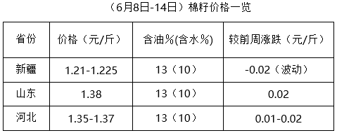 上周,內(nèi)地軋花廠零星收購加工,棉籽資源進(jìn)一步減少,開機(jī)油棉廠仍以收購新疆棉籽為主,因車輛減少,運費難降,新疆棉籽到內(nèi)地價格持續(xù)上漲,油棉廠榨利虧損,加之麥?zhǔn)辙r(nóng)忙,開工率再降,棉籽收購少量,限制其上漲幅度。距離新棉籽上市時間較久,未來棉籽仍將保持高位調(diào)整運行。