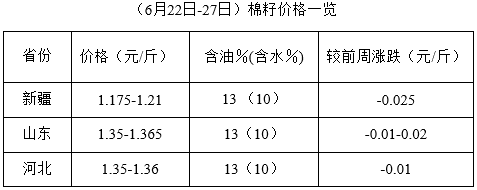 本周,內(nèi)地持續(xù)收購(gòu)加工籽棉者多為山東、河北個(gè)別軋花廠,所加工棉籽供應(yīng)量有限,油棉廠仍以采購(gòu)新疆地區(qū)庫(kù)存棉籽加工為主。受外圍整體市場(chǎng)行情影響,棉副產(chǎn)品出貨不快,油棉廠經(jīng)營(yíng)虧損加劇,棉籽收購(gòu)價(jià)格持續(xù)回落。但因目前棉籽資源量萎縮,新疆持籽商仍持價(jià)惜售,棉籽價(jià)格下跌幅度有限。距離新籽上市時(shí)間較長(zhǎng),未來(lái)棉籽在參照下游棉副產(chǎn)品支撐力度下,保持高位調(diào)整局面運(yùn)行。