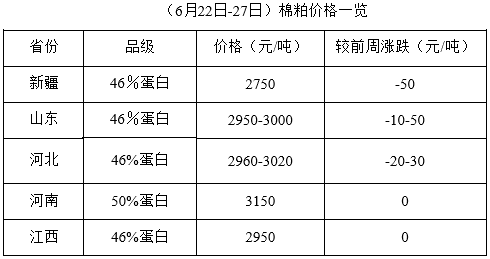 本周,期貨豆粕漲跌兩難,保持一定范圍內(nèi)的震蕩模式,現(xiàn)貨相應(yīng)調(diào)整。周末沿海地區(qū)43%蛋白豆粕價(jià)至2640-2740元/噸,先漲后跌,整體較前周波動(dòng)10-30元/噸,利空棉粕行情。目前46%蛋白棉粕與43%蛋白豆粕無(wú)性?xún)r(jià)比優(yōu)勢(shì),飼料廠多修改配方,減少對(duì)棉粕使用量,限制棉粕需求,廠家為順價(jià)出貨,下調(diào)棉粕報(bào)價(jià)。6-8月到港大豆量較大,豆油廠開(kāi)工率較高,豆粕庫(kù)存壓力倍增,打壓粕類(lèi)行情。但目前棉籽貨少價(jià)高,支撐棉油廠對(duì)棉粕持價(jià)信心,限制棉粕下跌空間。距離新籽上市時(shí)間較長(zhǎng),未來(lái)棉粕在參照豆粕走勢(shì)前提下,貨少者仍將保持相對(duì)抗跌狀態(tài)運(yùn)行。