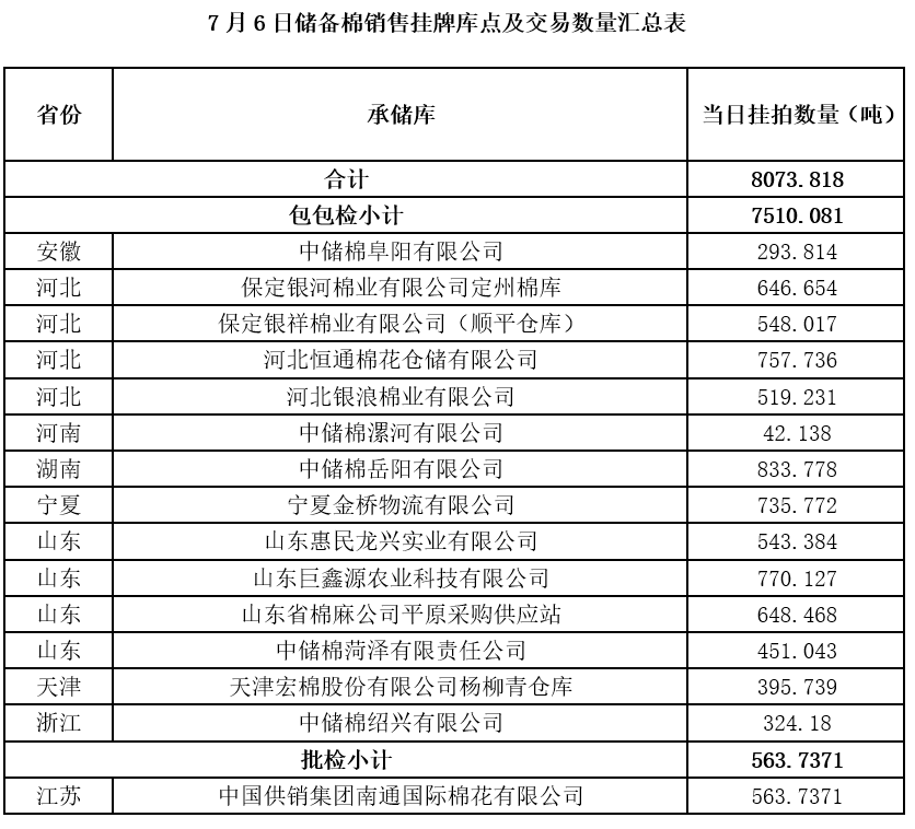 附件:1.7月6日上市銷售儲(chǔ)備棉數(shù)據(jù)明細(xì)表(包包檢)