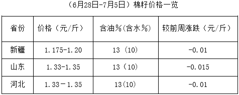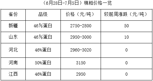 上周(6月28日-7月5日),期貨大豆及豆類產(chǎn)品上周一先行回落,后止跌反彈,現(xiàn)貨市場相應(yīng)調(diào)整,支撐棉籽、棉副行情。但因油棉廠開工一般,經(jīng)營持續(xù)虧損,棉籽價格高位波動,棉副產(chǎn)品多處穩(wěn)定狀態(tài),局部小幅調(diào)整,市場難言好轉(zhuǎn)。