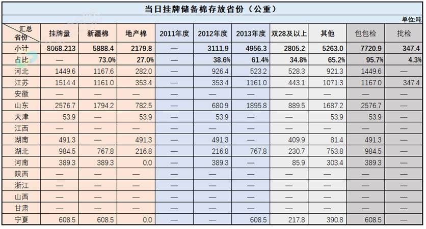中國儲備棉管理有限公司定于7月8日上市銷售儲備棉重量8068.2134噸,共39捆。具體庫點及數(shù)量見下表。