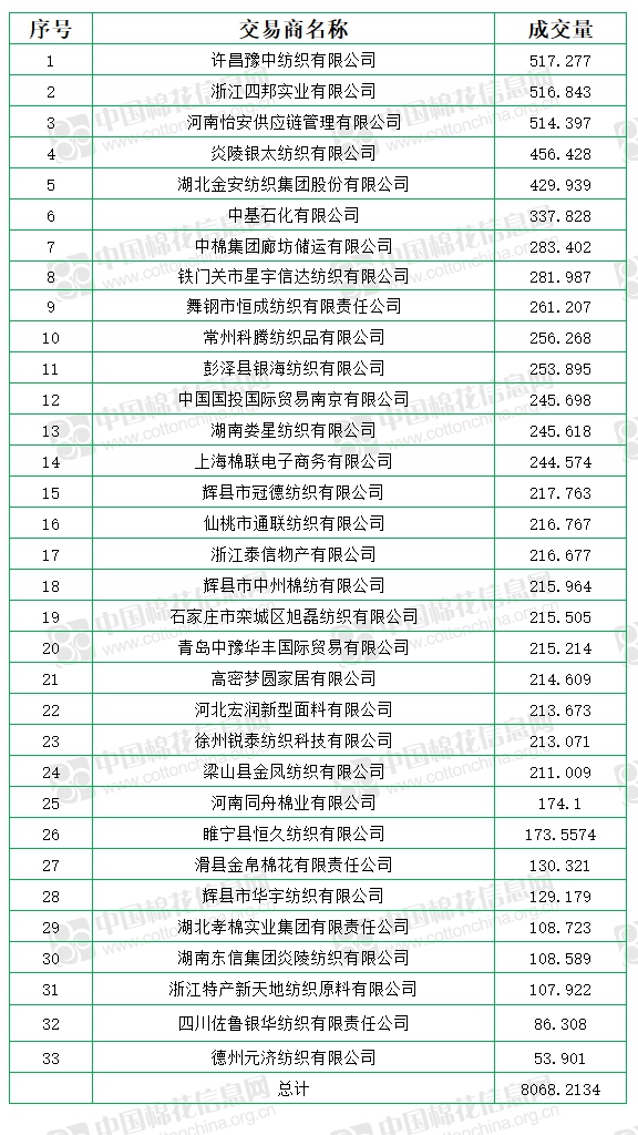 中國儲備棉管理有限公司定于7月8日上市銷售儲備棉重量8068.2134噸,實際成交8068.2134噸,成交率100%,成交均價11567元/噸,較7日上漲34元/噸,折3128價格12918元/噸,較7日上漲83元/噸。