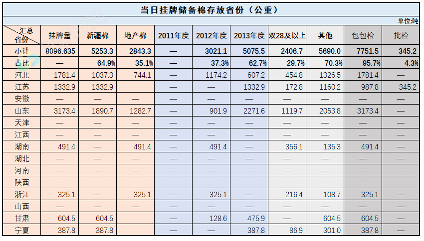 中國(guó)儲(chǔ)備棉管理有限公司定于7月10日上市銷售儲(chǔ)備棉重量8096.63噸,共37捆。具體庫(kù)點(diǎn)及數(shù)量見(jiàn)下表。