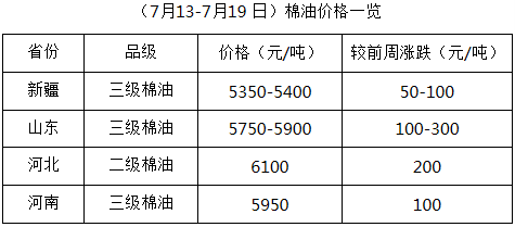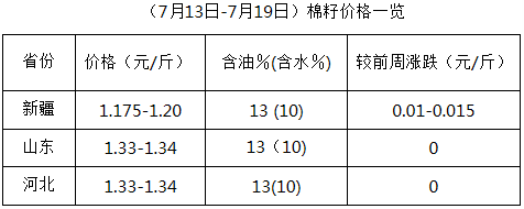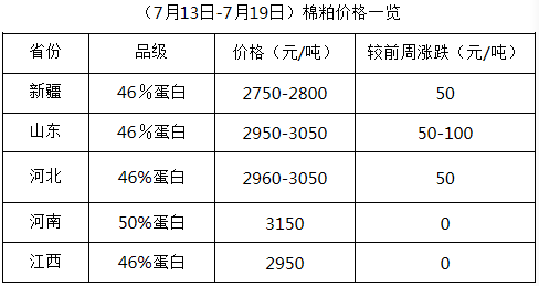 上周(7月13日-19日),期現(xiàn)貨豆油呈大漲之勢,支撐棉油價(jià)格同步跟漲,棉籽資源量有限,價(jià)格高位震蕩調(diào)整,棉粕止跌反彈,油棉廠開工率再降,市場成交少量。