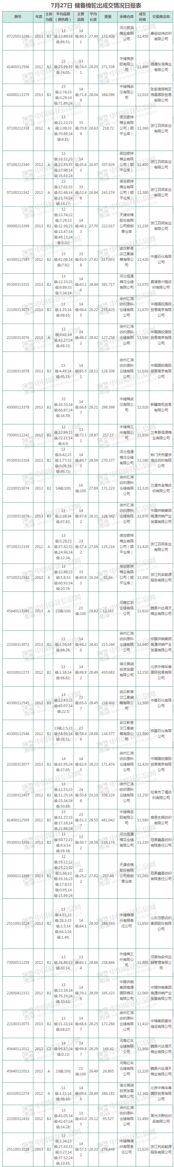 中國儲備棉管理有限公司定于7月27日上市銷售儲備棉重量8515.933噸,實際成交8515.933噸,成交率100%,成交均價11612元/噸,較24日上漲219元/噸,折3128價格12917元/噸,較24日上漲181元/噸。