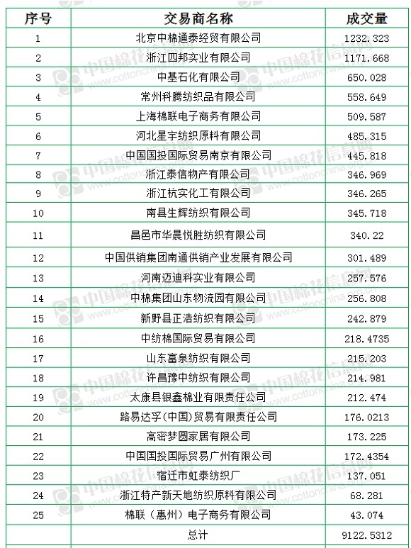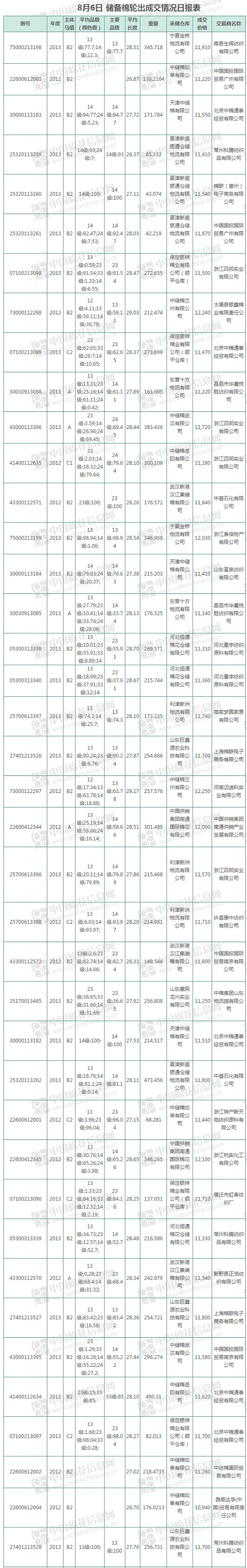 中國(guó)儲(chǔ)備棉管理有限公司定于8月6日上市銷(xiāo)售儲(chǔ)備棉重量9122.5312噸,實(shí)際成交9122.5312噸,成交率100%,成交均價(jià)11634元/噸,較5日上漲9元/噸,折3128價(jià)格13008元/噸,較5日上漲27元/噸。