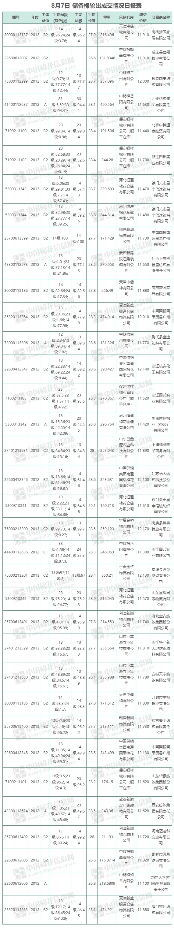 中國儲備棉管理有限公司定于8月7日上市銷售儲備棉重量9055.7219噸,實際成交9055.7219噸,成交率100%,成交均價11750元/噸,較6日上漲116元/噸,折3128價格13060元/噸,較6日上漲52元/噸。