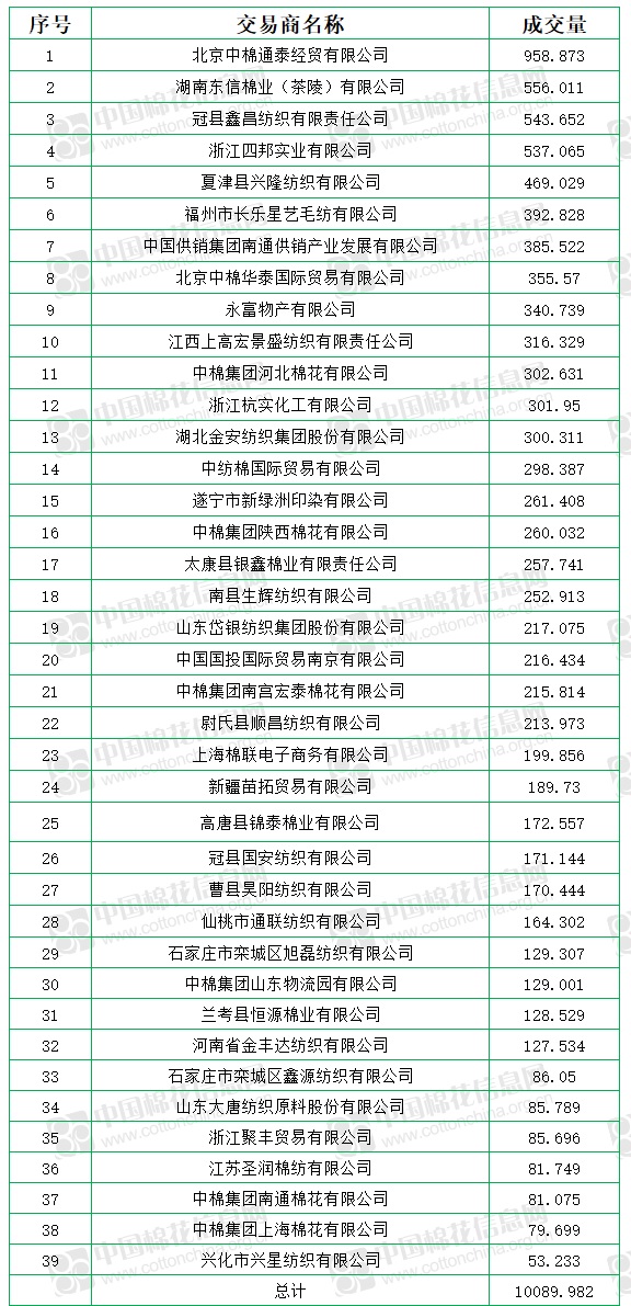 中國儲備棉管理有限公司定于9月2日上市銷售儲備棉重量10089.982噸,實(shí)際成交10089.982噸,成交率100%,成交均價12228元/噸,較1日上漲43元/噸,折3128價格13483元/噸,較1日上漲5元/噸。