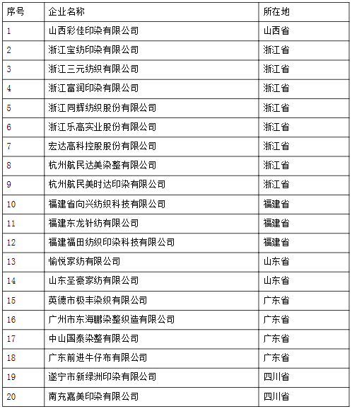 符合《印染行業(yè)規(guī)范條件(2017版)》企業(yè)名單(第三批)