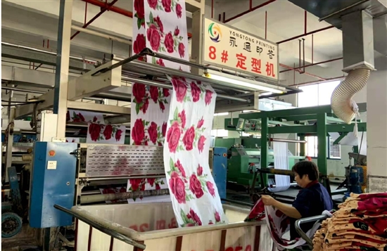 了解到,在藍印時尚小鎮(zhèn),除“永通印花”,“寶紡印染”“迎豐科技”“錦森印染”等眾多印染企業(yè)都迎來生產(chǎn)旺季。