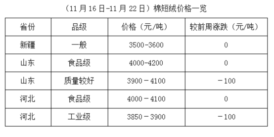 油棉廠經(jīng)營虧損持續(xù),開工率有所下降,棉短絨行情穩(wěn)定為主,個別持續(xù)開工廠家下調(diào)棉短絨價格出貨。下游化纖廠、精制棉廠開工有限,棉短絨采購不溫不火,市場供求關(guān)系相對平衡。在供求量沒有較大改變前,棉短絨將保持相對穩(wěn)定格局運(yùn)行,局部波動調(diào)整或成為常態(tài)。