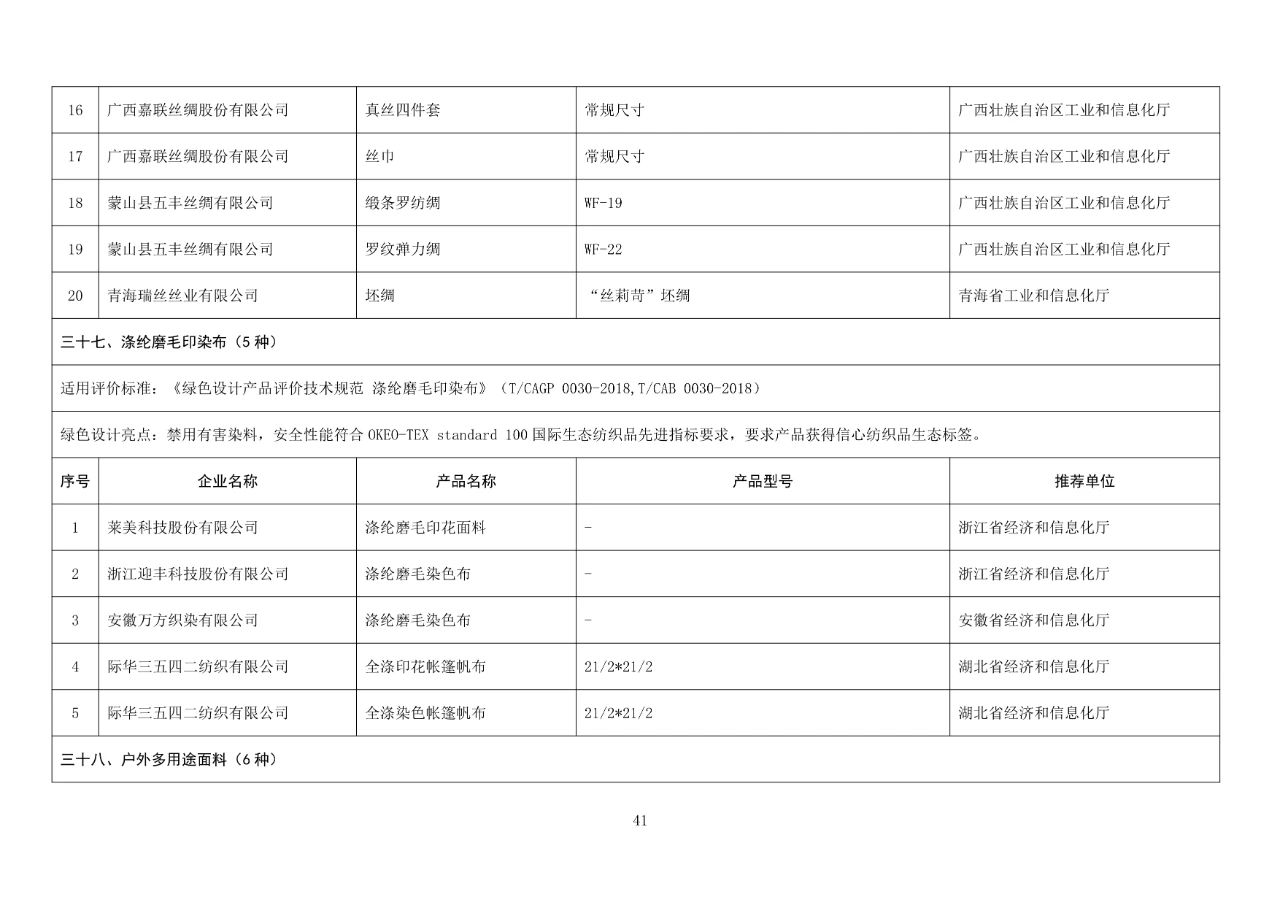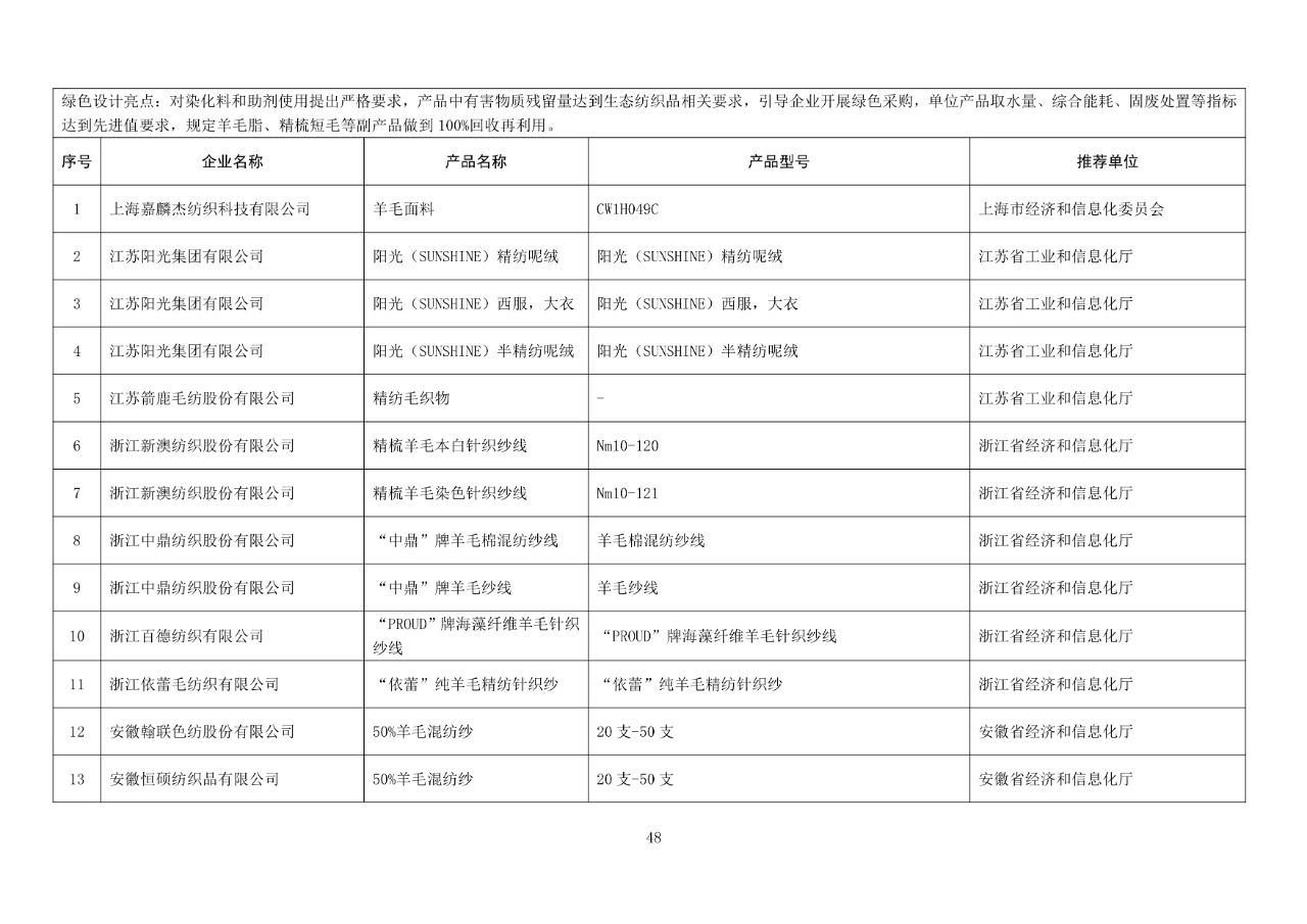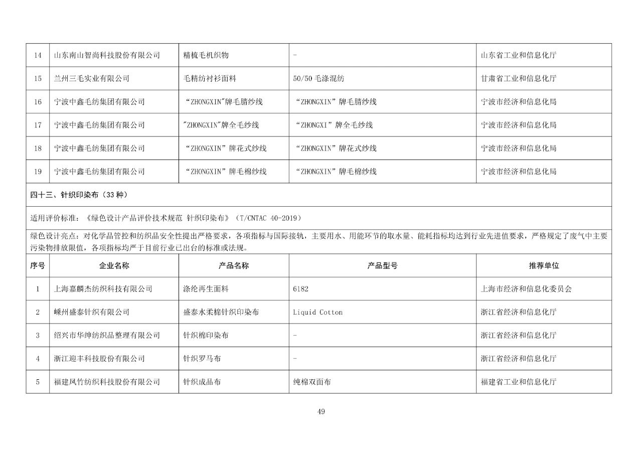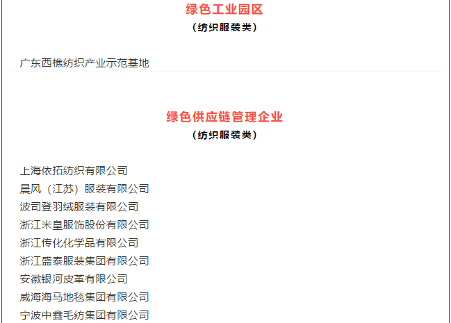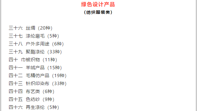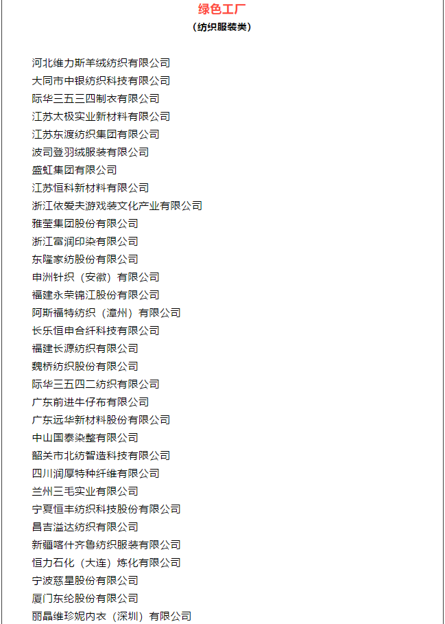 在第五批綠色制造名單中,有多項紡織服裝類工廠、產品和企業(yè)入圍,具體包括: