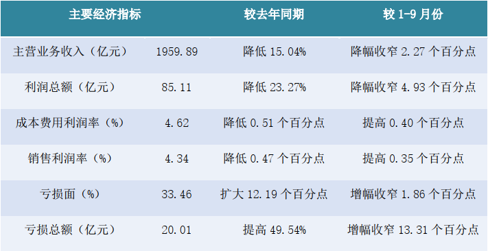 1578家規(guī)模以上印染企業(yè)虧損戶數(shù)為528戶,虧損面33.46%,同比擴(kuò)大12.19個(gè)百分點(diǎn),增幅較前3季度收窄1.86個(gè)百分點(diǎn);虧損企業(yè)虧損總額20.01億元,同比提高49.54%,增幅較前3季度收窄13.31個(gè)百分點(diǎn)。