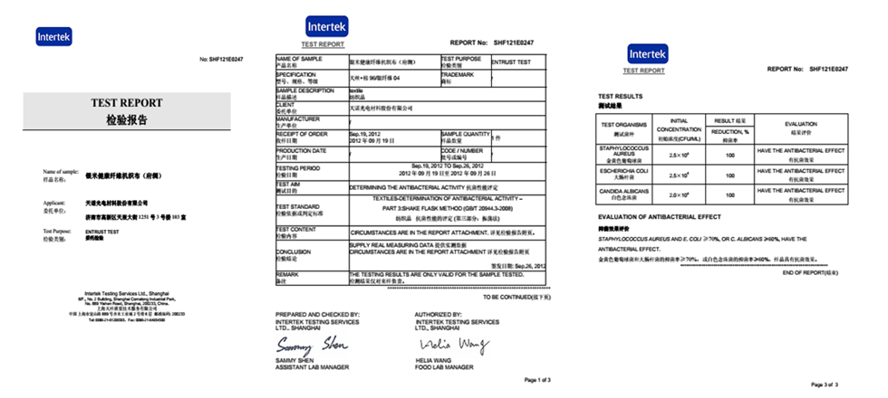 該系列紡織品采用的抗菌棉纖維,所織面料可耐水洗100次保持有效抗菌,可用于高品質(zhì)棉質(zhì)永久抗菌面料。