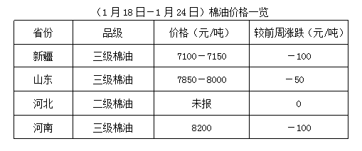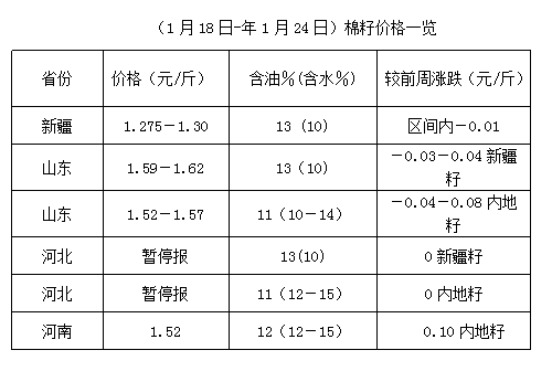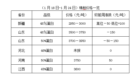 上周(1月18-24日),期貨豆油、豆粕全線走弱,且豆粕跌勢加劇,拖累油棉行情,棉籽、棉副滯漲回落,油棉虧損加劇,加之環(huán)保預(yù)警,山東部分地區(qū)停機(jī),市場購銷減量,春節(jié)放假時間即將到來,個別油棉廠已做好放假準(zhǔn)備,油棉市場維持震蕩調(diào)整。