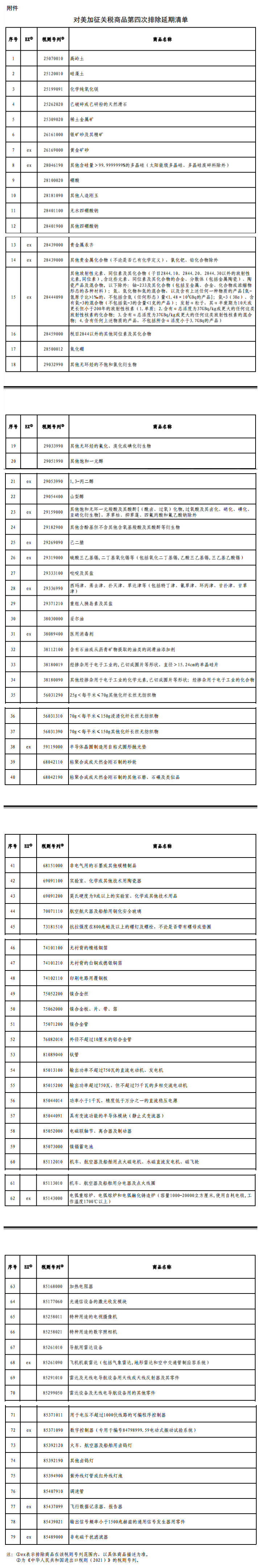 附件:對(duì)美加征關(guān)稅商品第四次排除延期清單