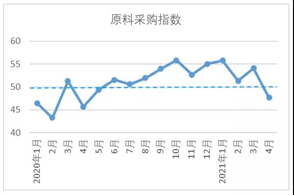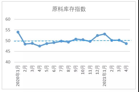 4月,原料采購指數(shù)47.65,較3月下降5.45。從市場價格看,在美聯(lián)儲繼續(xù)寬松貨幣政策及天氣等因素的影響下,國內(nèi)外棉價大幅上漲后回落。當(dāng)月CotlookA指數(shù)平均值90.73美分/磅,環(huán)比下降0.72美分/磅,3128級棉花均價15563元/噸,環(huán)比下降409元/噸;化纖短纖方面,粘膠短纖價格整體呈下降趨勢,滌綸短纖價格在區(qū)間內(nèi)小幅震蕩。當(dāng)月主流粘膠纖維均價14925元/噸,環(huán)比下降664元/噸;1.4D直紡滌短均價6779元/噸,環(huán)比下降479元/噸。從棉紡企業(yè)采購情況看,棉花采購情況略好于非棉纖維,具體看,棉花采購量指數(shù)47.47,非棉纖維采購量指數(shù)46.64。