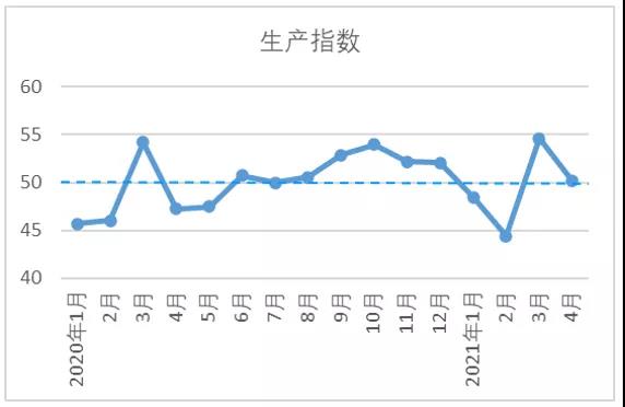 4月,生產(chǎn)指數(shù)50.17,處于擴張區(qū)間,但指數(shù)值較3月下降4.44。據(jù)調(diào)研了解,當(dāng)月除部分生產(chǎn)純棉產(chǎn)品的企業(yè)開臺略有調(diào)低外,多數(shù)棉紡織企業(yè)開機正常,基本滿負荷生產(chǎn)。調(diào)查數(shù)據(jù)顯示,開機率環(huán)比上升的企業(yè)占比為12.4%,高于下降企業(yè)占比2.1個百分點;產(chǎn)量方面,紗布產(chǎn)量均環(huán)比增加,綜合看,紗產(chǎn)量環(huán)比增幅略高于布產(chǎn)量。根據(jù)調(diào)查數(shù)據(jù),紗產(chǎn)量環(huán)比上升的企業(yè)占比為32.59%,高于下降企業(yè)占比1.83個百分點,布產(chǎn)量環(huán)比上升的企業(yè)占比為33.01%,高于下降企業(yè)占比0.66個百分點。