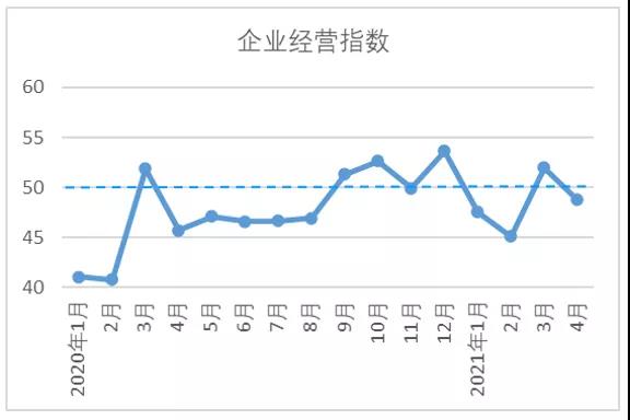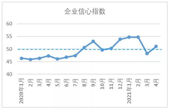 4月,企業(yè)信心指數(shù)51.06,較3月指數(shù)上升2.89。當(dāng)月,美聯(lián)儲繼續(xù)執(zhí)行寬松的貨幣政策,導(dǎo)致資產(chǎn)價格上漲明顯快于實體經(jīng)濟復(fù)蘇速度,全球經(jīng)濟復(fù)蘇充滿不確定性。印度疫情再度爆發(fā),紡織訂單回流國內(nèi),多數(shù)企業(yè)認為后期市場行情會短暫回暖。國內(nèi)方面,經(jīng)濟穩(wěn)定復(fù)蘇,市場消費延續(xù)恢復(fù)態(tài)勢,部分企業(yè)看好當(dāng)前市場行情,投資信心增加。根據(jù)調(diào)查數(shù)據(jù),認為后市樂觀向好的企業(yè)占比為31.02%,認為后市弱勢下行的企業(yè)占比為20.46%。