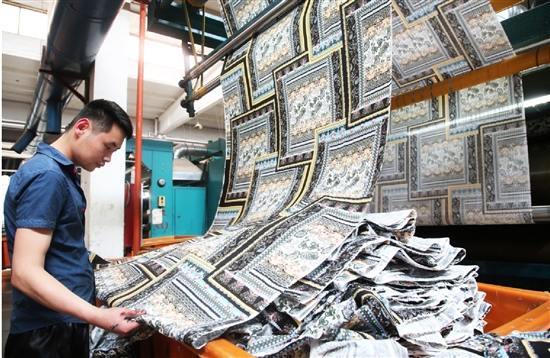 近日,浙江嘉華印染有限公司印染車間內(nèi),一匹匹成品人棉布不斷從后處理設備上下線。據(jù)了解,“嘉華印染”成立10多年來,已逐步從加工型企業(yè)向貿(mào)易型企業(yè)轉(zhuǎn)型,開拓更大市場。目前公司已形成產(chǎn)、供、銷一條龍體系,擁有17臺印花機,130多臺機缸,年產(chǎn)面料3億米。