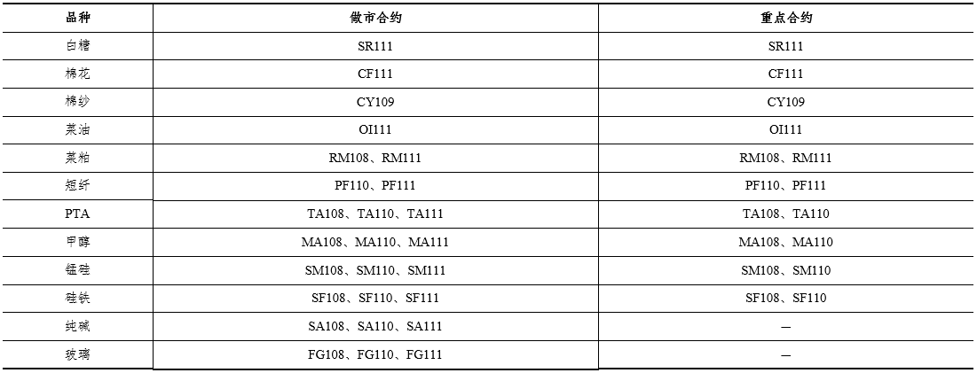 表2021年6月各期貨品種做市合約和重點(diǎn)合約