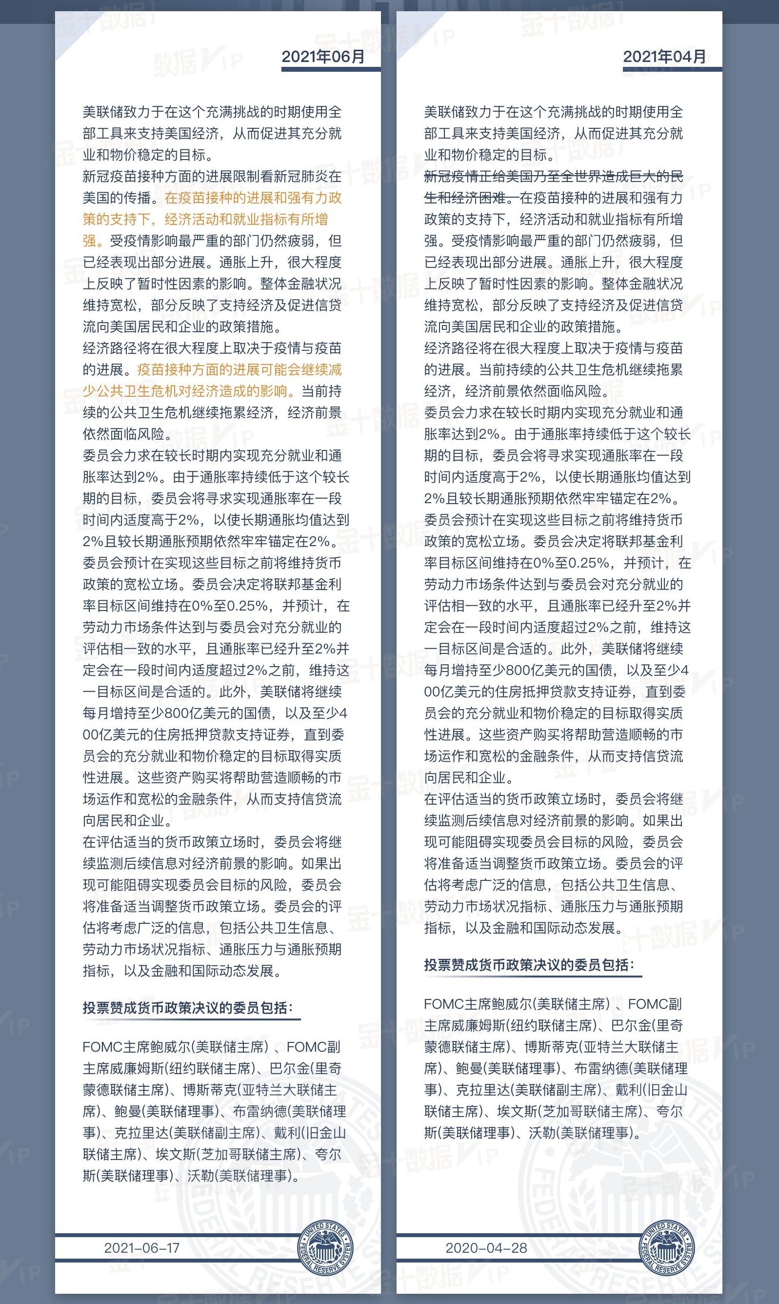 美聯(lián)儲(chǔ)FOMC聲明變化一覽: