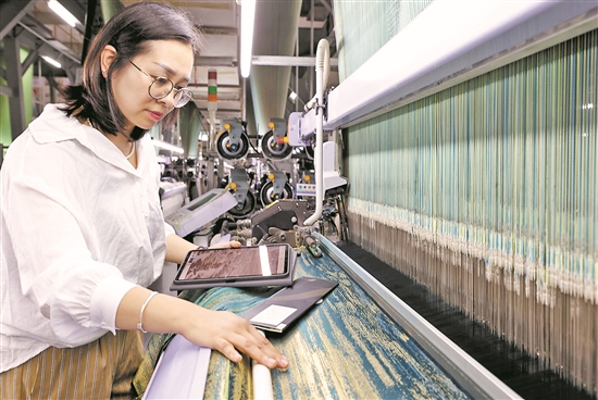 從衣被天下到國防軍工,從交通運輸?shù)结t(yī)療衛(wèi)生,從環(huán)境保護到新能源開發(fā),我國紡織“上天入地”滲透到各個行業(yè)。曾是加工代名詞的中國紡織業(yè),正在技術創(chuàng)新的推動下,踏上“中國智造”之路。今天紡織行業(yè)是我國科技創(chuàng)新最為活躍的工業(yè)部門之一。2016-2019年紡織行業(yè)共有11項成果獲國家科學技術獎。在纖維材料、綠色制造、紡織機械等領域,突破一批技術難題。在國際標準規(guī)則制定方面,我國紡織服裝企業(yè)正積極主動參與國際標準和技術法規(guī)的制定。圖為在位于浙江省新昌縣的達利絲綢(浙江)有限公司生產車間,絲綢設計師在對面料圖案花型進行現(xiàn)場對版。