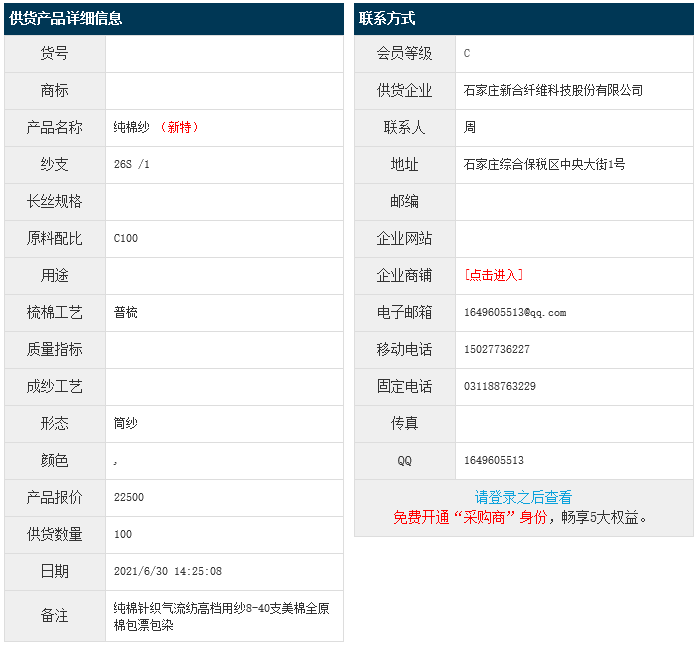 6月30日,石家莊新合纖維科技股份有限公司純棉紗C100 26S,報(bào)價(jià)為22500元/噸,實(shí)際成交價(jià)以協(xié)商為準(zhǔn)。[點(diǎn)擊查看詳情]
