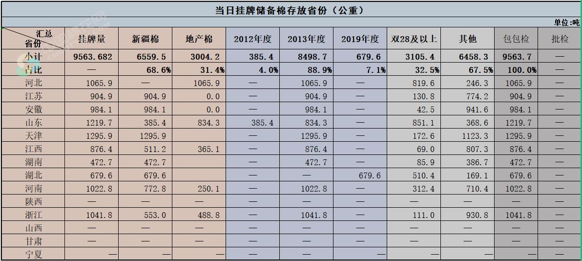 中國儲備棉管理有限公司定于7月14日上市銷售儲備棉重量9563.682噸,共43捆,其中新疆棉6559.46噸。