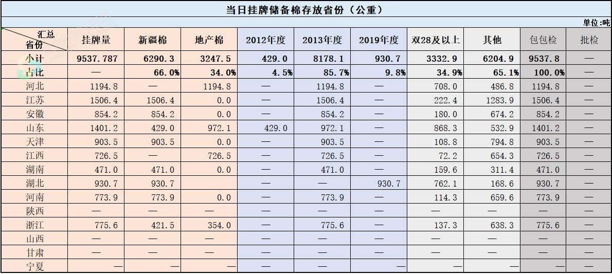 中國儲備棉管理有限公司定于7月15日上市銷售儲備棉重量9537.787噸,共42捆,其中新疆棉6290.32噸。