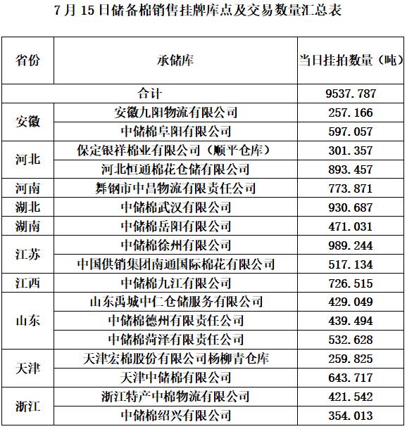 1、7月15日上市銷售儲備棉數(shù)據(jù)明細表(包包檢)