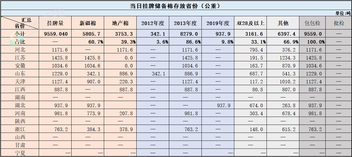 中國(guó)儲(chǔ)備棉管理有限公司定于7月16日上市銷售儲(chǔ)備棉重量9559.04噸,共43捆,其中新疆棉5805.71噸。