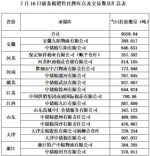 1、7月16日上市銷售儲(chǔ)備棉數(shù)據(jù)明細(xì)表(包包檢)
