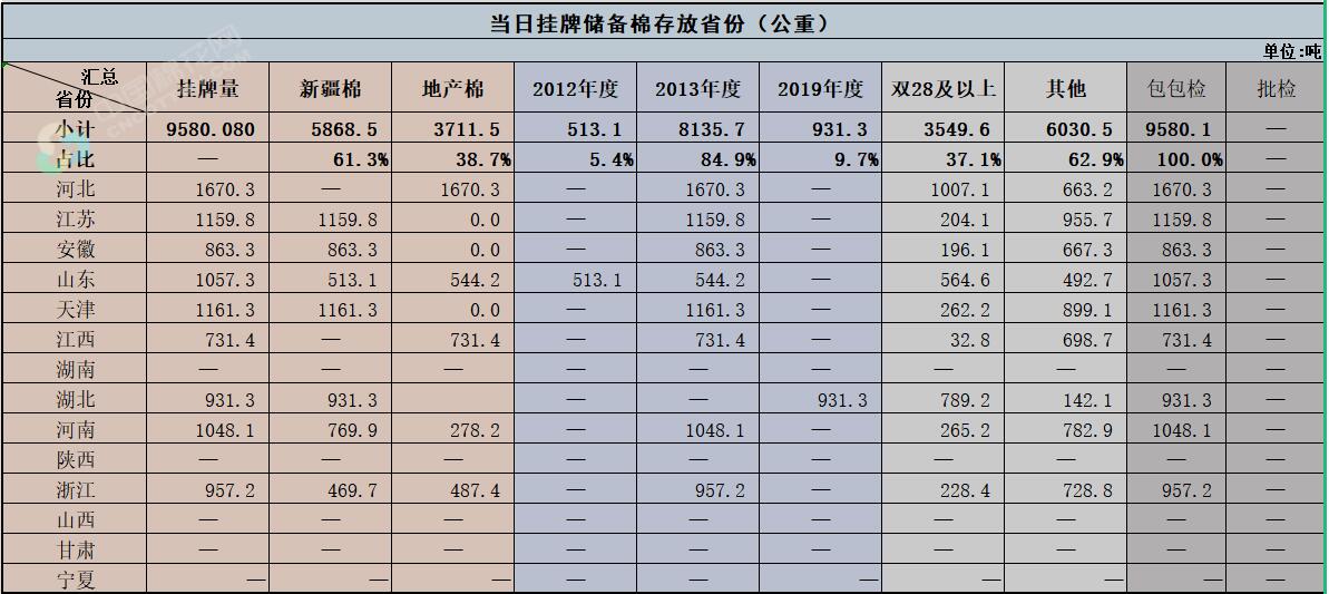 中國儲備棉管理有限公司定于7月19日上市銷售儲備棉重量9580.08噸,共40捆,其中新疆棉5868.55噸。