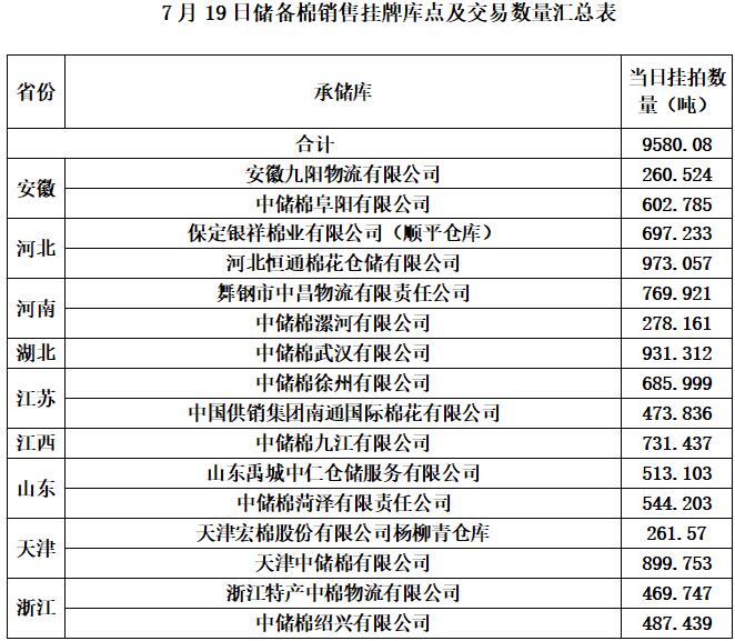 1、7月19日上市銷售儲備棉數(shù)據(jù)明細(xì)表(包包檢)