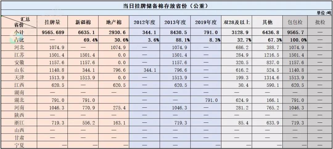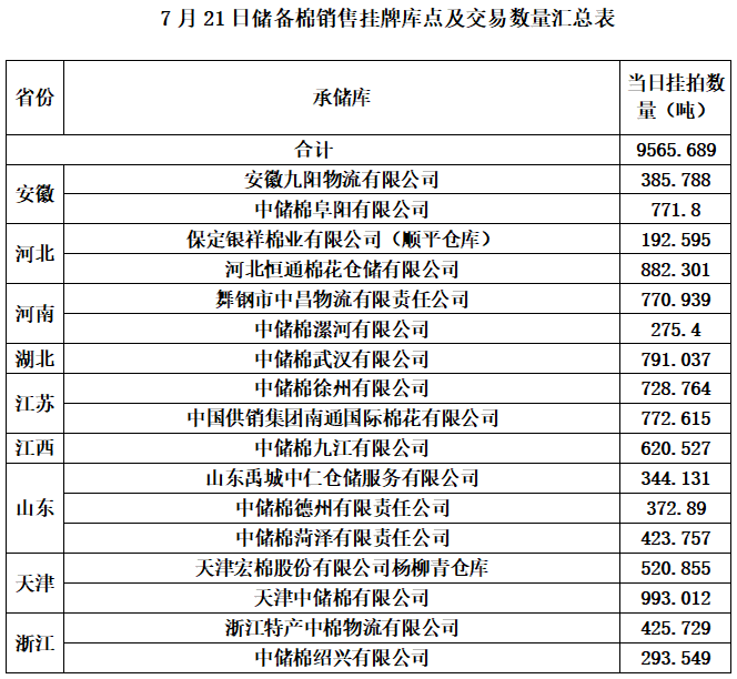 中國儲(chǔ)備棉管理有限公司定于7月21日上市銷售儲(chǔ)備棉重量9565.689噸,共41捆,其中新疆棉6635.11噸。