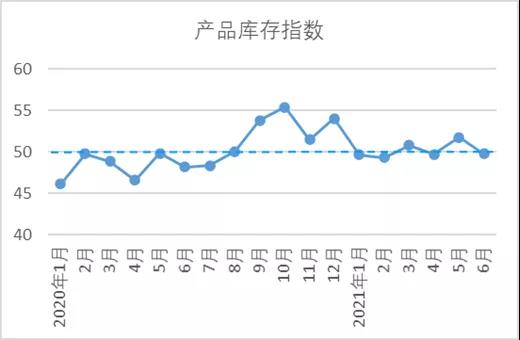 6月,原料庫存指數(shù)48.48,指數(shù)值較5月下降0.25。受東南亞疫情影響,市場前期訂單相對較多,企業(yè)開工良好,原料消耗較快。據(jù)中國棉紡織行業(yè)協(xié)會(以下簡稱“中棉行協(xié)”)調(diào)查數(shù)據(jù),6月,棉花庫存量環(huán)比下降企業(yè)占比為42.82%,高于上升企業(yè)占比14.47個百分點;非棉纖維庫存量環(huán)比下降企業(yè)占比為42.83%,高于上升企業(yè)占比15.91個百分點。
