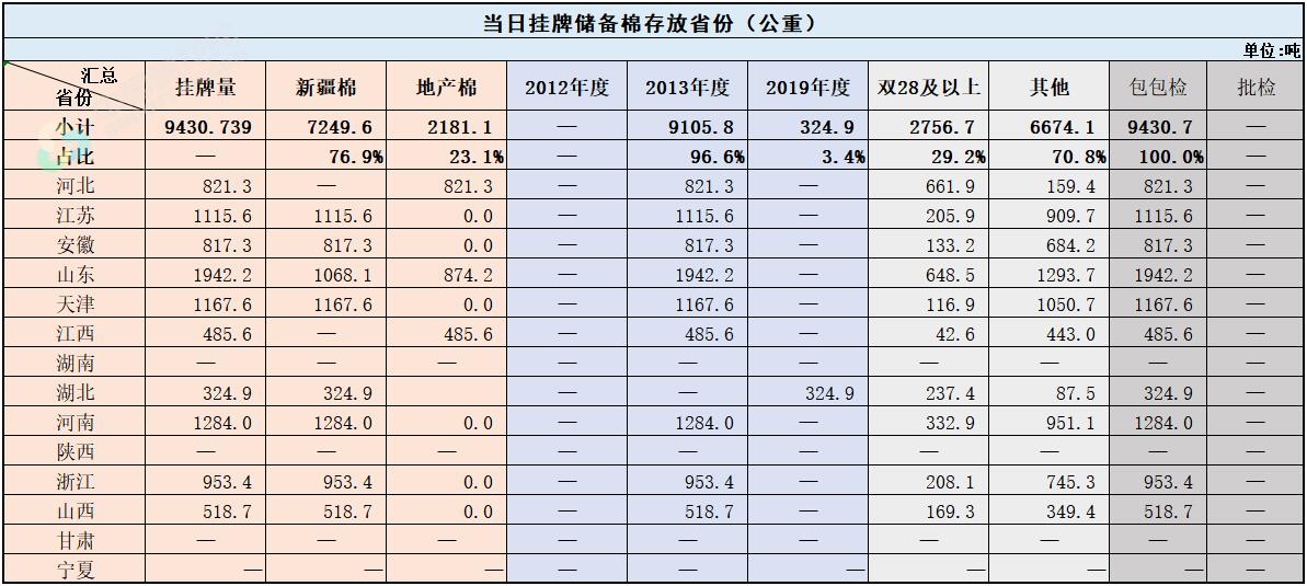 中國儲備棉管理有限公司定于8月3日上市銷售儲備棉重量9430.7388噸,共41捆,其中新疆棉7249.62噸。