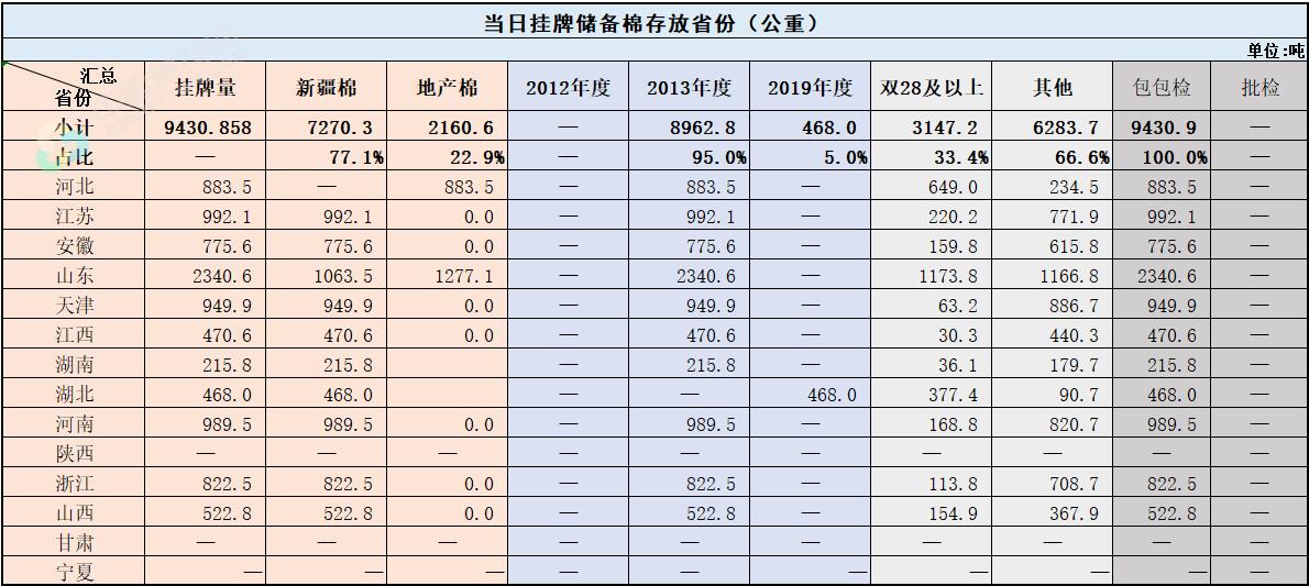 中國(guó)儲(chǔ)備棉管理有限公司定于8月4日上市銷售儲(chǔ)備棉重量9430.858噸,共37捆,其中新疆棉7270.27噸。