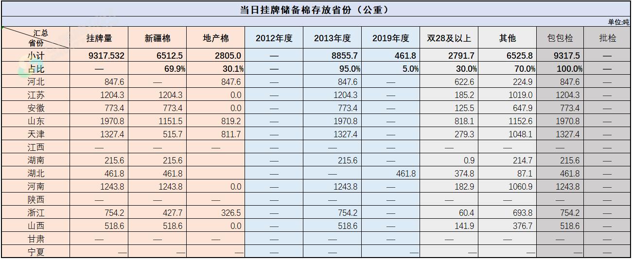 中國儲備棉管理有限公司定于8月9日上市銷售儲備棉重量9317.532噸,共40捆,其中新疆棉6512.52噸。