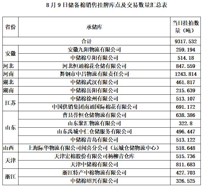 1、8月9日上市銷售儲備棉數(shù)據(jù)明細表(包包檢)