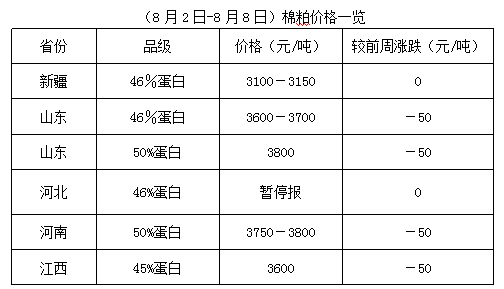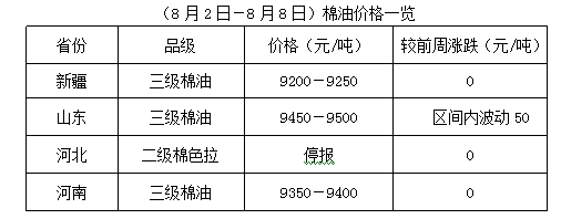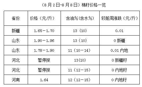 上周(8月2-8日),豆油、豆粕期貨震蕩難穩(wěn),整體漲少跌多,現貨行情進一步調整。目前棉籽處青黃不接之時,棉籽貨少價高,油棉廠開工率較低,棉油、棉粕多持價運行,但下游采購謹慎,成交不快,棉短絨貨少價堅,季節(jié)性特點明顯。內地油棉廠開工特點多為斷續(xù)開工,整體購銷少量。