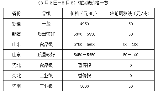 上周,持籽商雖積極出貨,但棉籽價格仍難回落,成本居高難下,加之棉油、棉粕出貨不快,油棉廠經營無利,廠家對棉短絨寄望高價。因油棉廠開工率較低,棉短絨產出量少,多數廠家已無貨,貨少廠家持絨觀望。但因下游化纖廠、精制棉廠隨用隨購,高位采購少量,限制棉短絨上漲幅度。離新棉籽上市仍有一段時間,未來棉短絨高價難下。