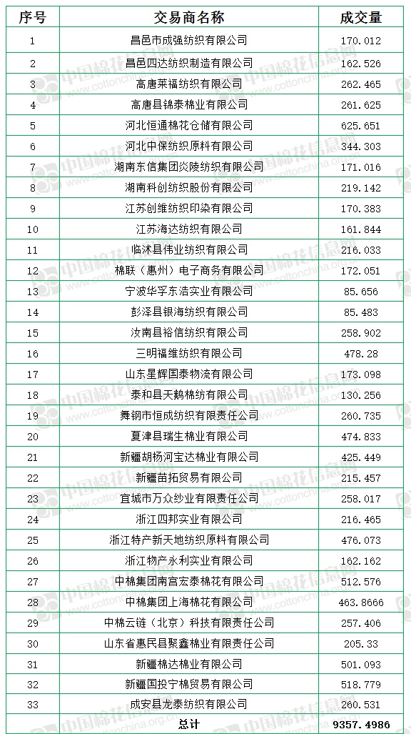 新疆棉成交均價(jià)17581元/噸,較12日上漲75元/噸,折3128價(jià)格18965元/噸,較12日上漲112元/噸,平均加價(jià)2451元/噸。