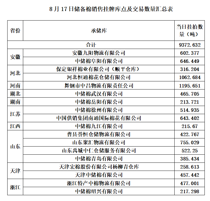 1、8月17日上市銷售儲備棉數(shù)據(jù)明細(xì)表(包包檢)