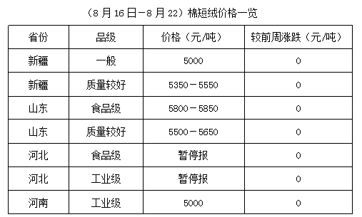 上周,棉籽高位有漲,油棉廠收購少量,各地多斷續(xù)開工,棉短絨因產(chǎn)出率較低工,整體供應量較少,廠家多持價出貨,但無奈下游化纖廠、精制棉廠詢單無量,個別剛需采購為主,棉短絨市場表現(xiàn)平淡,限制其上漲空間,各地暫持價運行。新棉籽上市前,棉短絨購銷拉鋸狀態(tài)仍將持續(xù)。