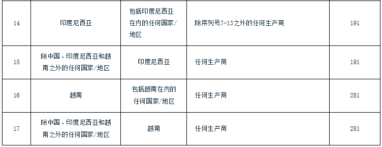 附表:印度對(duì)涉華滌綸紗線反傾銷(xiāo)終裁建議征稅表